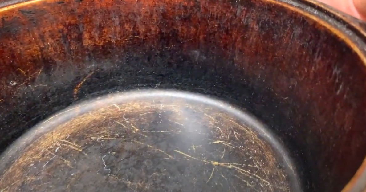 На днях внимание общественности привлек старинный казан, который не видал чистки целых три десятка лет. Его состояние впечатляет: толстый слой жира и нагар как внутри, так и снаружи, буквально готовый треснуть от обилия накопившихся отходов.